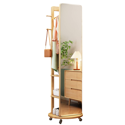 BONJEAN镜子全身穿衣镜落地旋转多功能立式家用卧室移动实木试衣带挂衣架