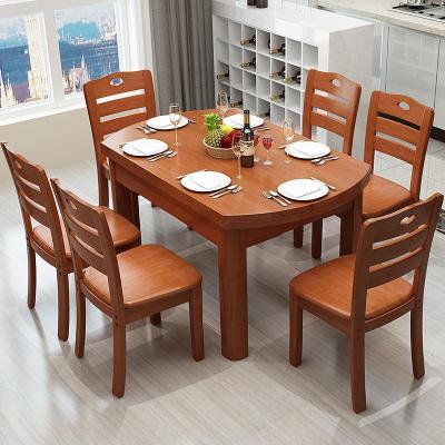汐岩实木餐桌椅组合伸缩折叠两用圆桌现代简约餐桌家用小户型吃饭桌子