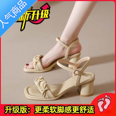 SUNTEK粗跟高跟凉鞋女夏2023新款法式中跟百搭不累脚配裙子一字带罗马鞋