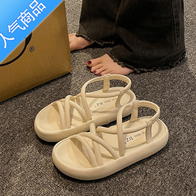 SUNTEK深霖厚底百搭罗马凉鞋女2023年夏季新款软底白色仙女风休闲沙滩鞋