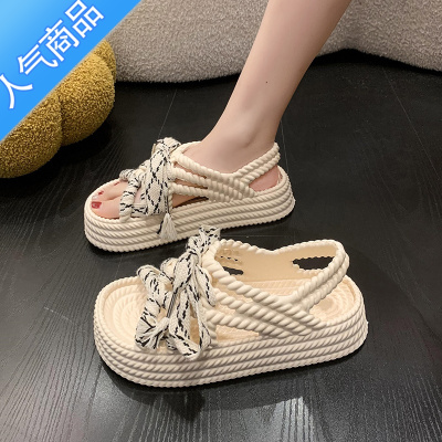 SUNTEK凉鞋女夏季2023新款松糕厚底小个子沙滩鞋高级感法式配裙子罗马鞋
