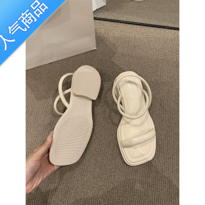 SUNTEK凉鞋女2023夏季新款时尚百搭气质露趾包跟ins潮平底一字带罗马鞋