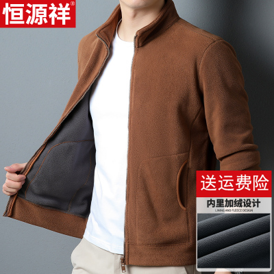 恒源祥秋冬季男士摇粒绒立领外套韩版秋装开衫卫衣双面绒毛衣夹克