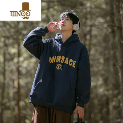 YANXU连帽卫衣男2023新款字母中山套头帽衫男生宽松嘻哈休闲外套