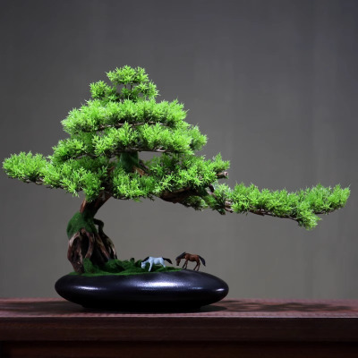 新中式迎客松摆件装饰品根雕造景 牧马迎客松-大美叶/盆