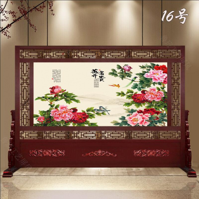 定制实木进客厅隔断屏风公司办公室酒店单位玄关山水座屏迎客松
