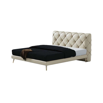 全友家居 现代简约时尚牛皮皮艺双人床1.8米婚床软床轻奢皮艺软靠床