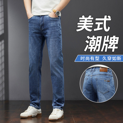 高端牛仔裤男2024春秋直筒宽松弹力中青年百搭长裤子男春秋款