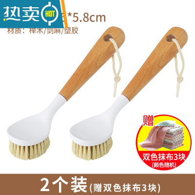 敬平榉木长柄洗锅刷家用小刷子刷锅器厨房不粘锅去污清洁锅刷 [厨房常备]2个装★加赠双色抹布3块(颜色随机)