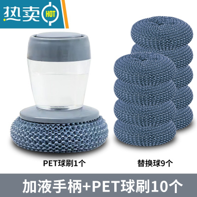 敬平自动刷锅器加液洗碗刷按压式清洁锅刷厨房家用去污洗锅刷钢丝球 加液PET球刷+送10个替换球刷子