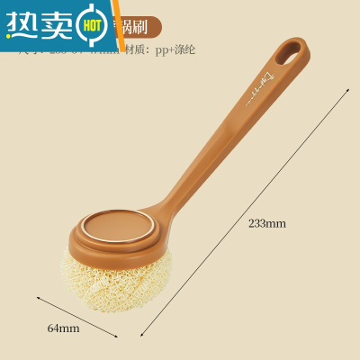 敬平刷锅器锅刷去污不伤锅洗锅洗碗长柄钢丝球清洁刷子厨房用品家用 轻奢棕色[含1个纳米替换球]