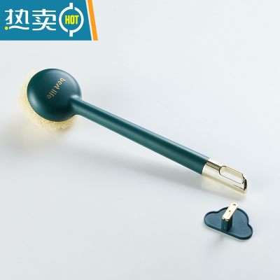敬平刷锅器锅刷不伤锅刷碗洗锅洗碗刷子清洁钢丝球长柄厨房用品家用 墨绿长柄[含1个刷球]