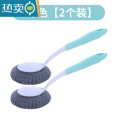 敬平长柄锅刷厨房清洁洗锅刷子家用去污多功能洗碗刷锅钢丝球刷锅器 绿色 [2个装]