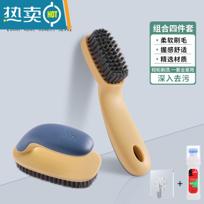 敬平鞋刷衣刷软毛刷家用不伤鞋专用洗鞋鞋刷子洗衣服刷鞋清洁器板刷 蓝黄洗刷四件套[衣刷+鞋刷+洗鞋剂+挂钩*1]
