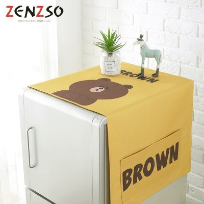家柏饰(CORATED)田园棉麻布艺罩单双对三开冰箱盖布收纳袋 布朗熊棉麻款(推荐) 双开/对开门67*175cm