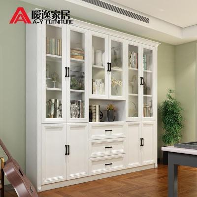 森美人简约现代大容量玻璃书柜书橱多功能展示柜欧式带抽屉储物柜定制