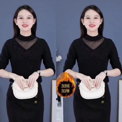 妈妈打底衫蕾丝加绒秋冬装半高领内搭长袖上衣洋气新款中老年女装