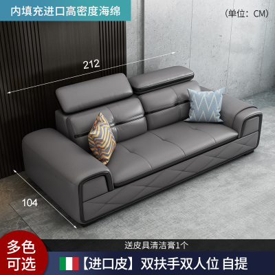 苏宁家装意式极简真皮沙发头层牛皮客厅简约现代轻奢直排大黑牛沙发
