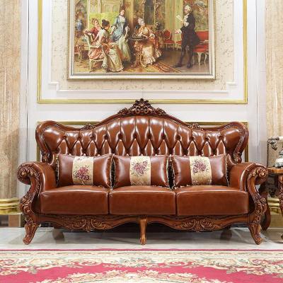 欧式实木真皮沙发 美式新古典别墅法式牛皮客厅123组合家具