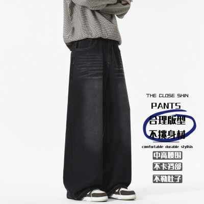 男装春秋新款牛仔裤宽松直筒水洗潮流青年直筒阔腿垂感男生长裤子