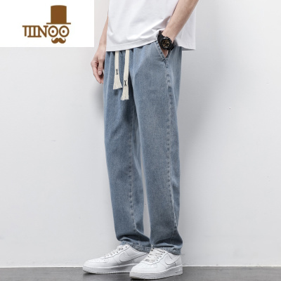 YANXU牛仔裤男夏天薄款宽松直筒长裤2023新款弹力九分休闲裤子男士夏季