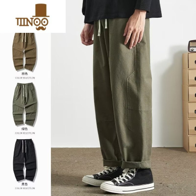 YANXU日系复古工装裤男夏季薄款拼接宽松直筒长裤男生纯色潮流休闲裤子