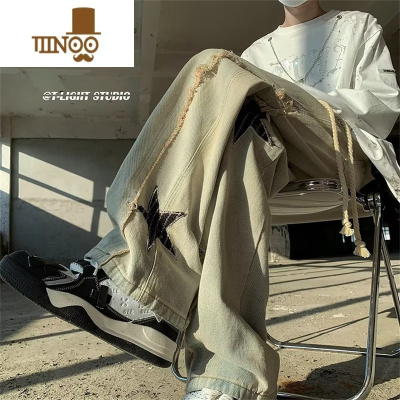 YANXU美式复古设计感星星牛仔裤男夏季薄款oversize高街直筒阔腿裤子潮