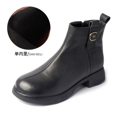 头层牛皮复古短靴女秋冬新款女士单靴休闲舒适真皮软底妈妈鞋