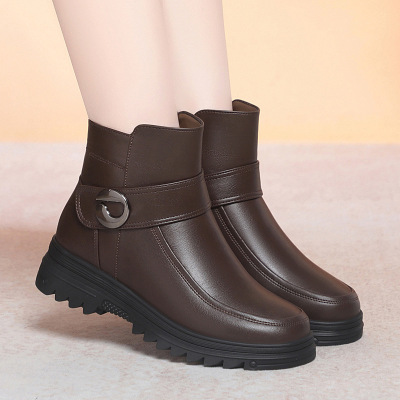 冬新款妈妈棉鞋羊毛中老年皮鞋加厚休闲真皮女鞋保暖短靴