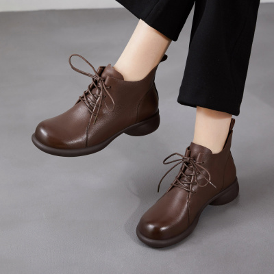 真皮靴子女马丁靴2026春秋新款头层牛皮粗舒适裸靴短筒系带单靴