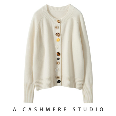 欧货新款羊绒衫女纯色山羊绒厚秋冬针织开衫毛衣短款外套外穿女