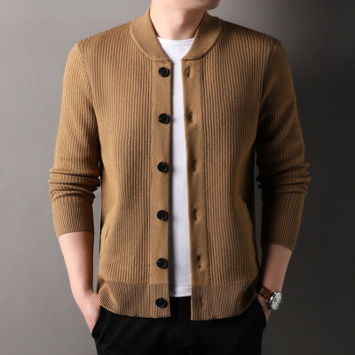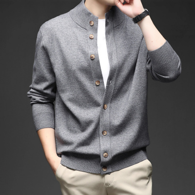 秋季新款男士无领针织开衫中年时尚百搭纯色休闲毛衣