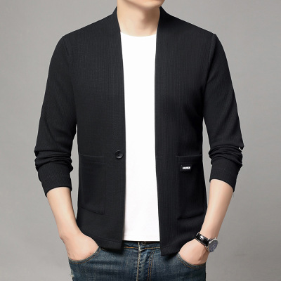 秋季男士针织开衫男新款青年简约纯色毛衣男时尚外套男装