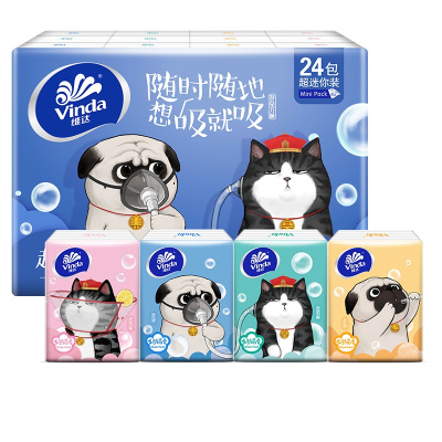 维达(Vinda)手帕纸 吾皇超迷你四层手帕纸*24包吸猫味 纸手帕餐巾纸迷你便携