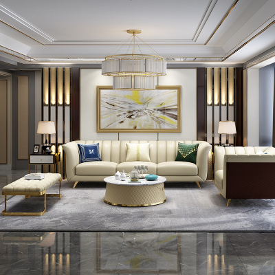北欧轻奢后现代真皮沙发 中小户型客厅整装转角简约美式贵妃组合