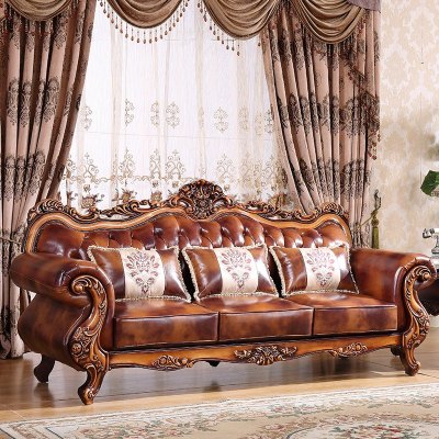 欧式沙发组合 客厅 整装头层牛皮简欧实木小户型美式真皮沙发