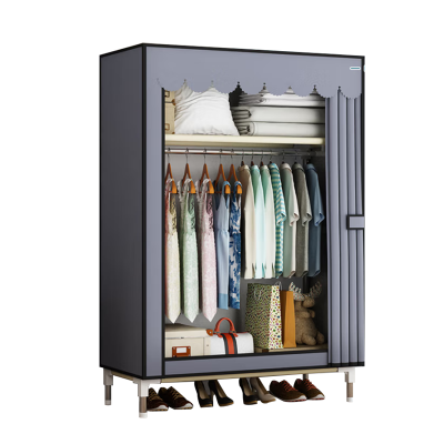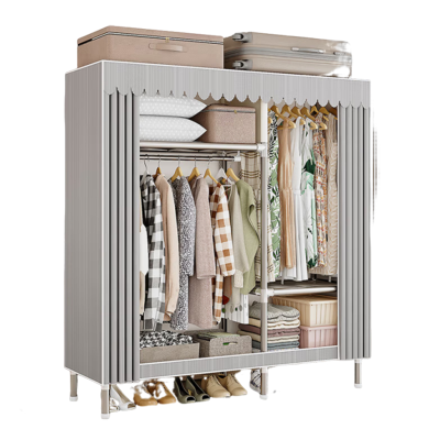 家时光铁接头简易布衣柜全钢架结构牛津布拉链款防尘式钢管加粗加固加厚