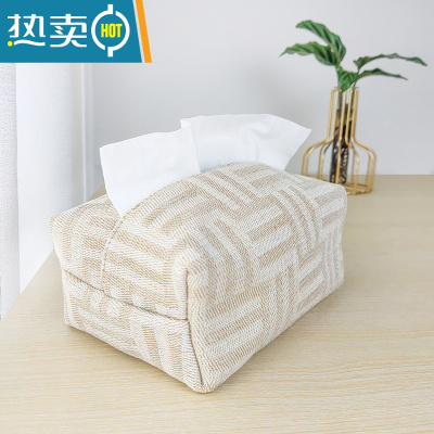 敬平日式纸巾盒黄麻布艺长方形抽纸盒简约抽纸包棉麻面巾盒餐巾纸盒包 大梳齿纹黄麻抽纸盒
