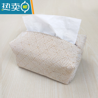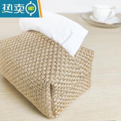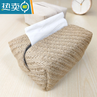 敬平日式纸巾盒黄麻布艺长方形抽纸盒简约抽纸包棉麻面巾盒餐巾纸盒包 大斜纹黄麻抽纸盒