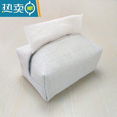 敬平日式纸巾盒黄麻布艺长方形抽纸盒简约抽纸包棉麻面巾盒餐巾纸盒包 米白色黄麻配皮抽纸盒