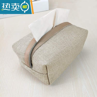 敬平日式纸巾盒黄麻布艺长方形抽纸盒简约抽纸包棉麻面巾盒餐巾纸盒包 纯亚麻配皮抽纸盒