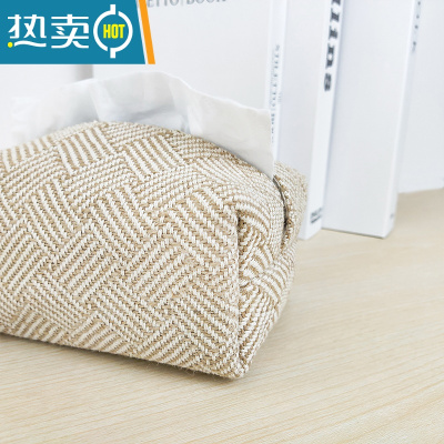 敬平日式纸巾盒黄麻布艺长方形抽纸盒简约抽纸包棉麻面巾盒餐巾纸盒包 小斜纹黄麻抽纸盒
