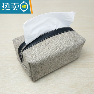 敬平日式纸巾盒黄麻布艺长方形抽纸盒简约抽纸包棉麻面巾盒餐巾纸盒包 纯亚麻配黑皮抽纸盒