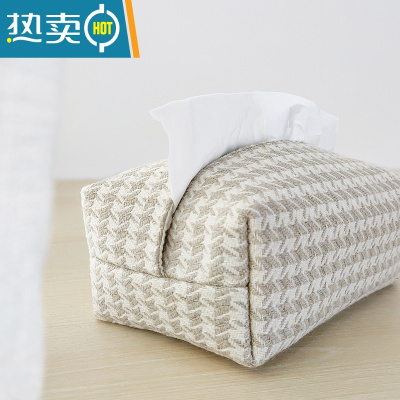 敬平日式纸巾盒黄麻布艺长方形抽纸盒简约抽纸包棉麻面巾盒餐巾纸盒包 千鸟格亚麻抽纸盒
