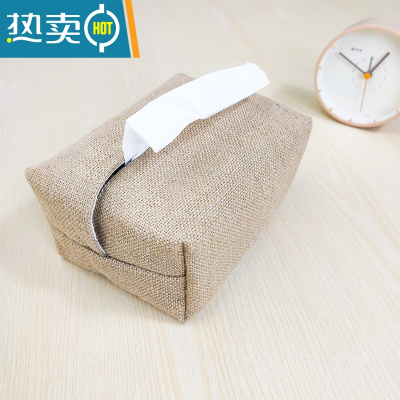 敬平日式纸巾盒黄麻布艺长方形抽纸盒简约抽纸包棉麻面巾盒餐巾纸盒包 细平纹黄麻抽纸盒