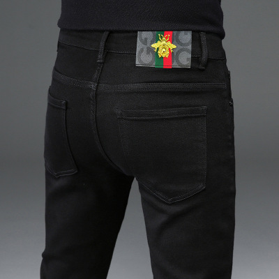 意大利高端黑色牛仔裤男夏季薄款潮牌修身小脚男裤韩版休闲长裤子