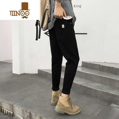 YANXU潮牌chic百搭牛仔裤男弹力休闲韩版潮流修身小脚裤款黑色长裤