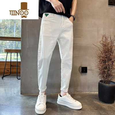 YANXU夏季弹力薄款黑色牛仔裤男士潮流宽松九分裤修身休闲小脚长裤子男