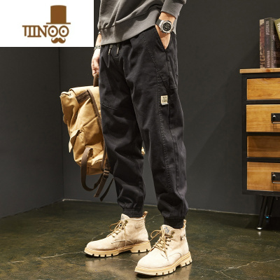 YANXU夏季黑色休闲裤男潮牌宽松小脚哈伦束脚工装裤款长裤子拼接款
