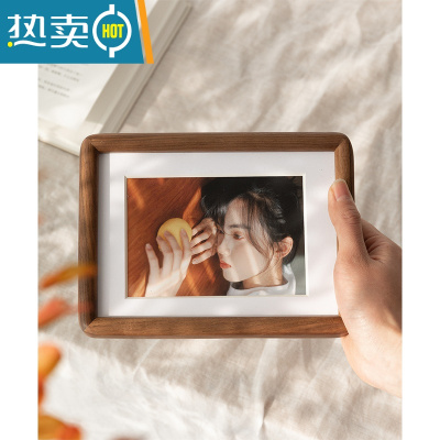 敬平黑胡桃实木圆角相框摆台洗照片定制diy装裱6 7 8寸儿童照片挂墙10 1425圆角柚木-不含卡纸(需要加卡纸单独联